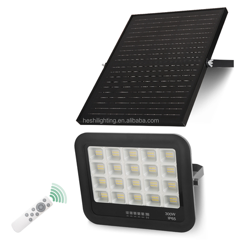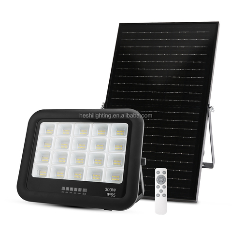 Heshi 300W LED 태양 광 홍수 조명 야외 방수 ABS 쉘 IP65 180lm/W 도로 조명을위한 따뜻한 흰색 CCT 3 년 보증
